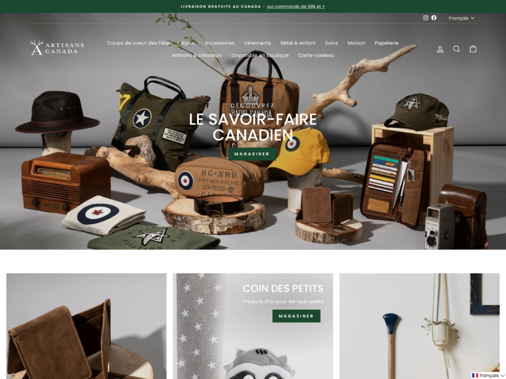 Dans le cadre de notre collaboration avec Artisans Canada, nous avons entrepris des modifications significatives sur leur boutique en ligne et avons reconstruit leur site web pour le rendre pleinement opérationnel avec les dernières versions de Shopify.